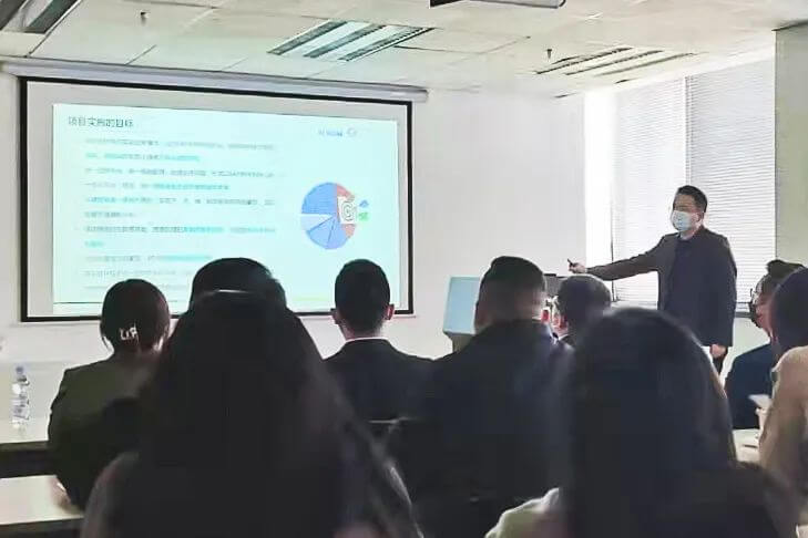 在双方项目经理做了项目背景、项目组织构成和角色职责后,爱家云咨询总监/高级合伙人肖总针对项目的实施范围、项目的计划、项目实施过程管控及项目过程中的质量保障和风险规避进行了分享。